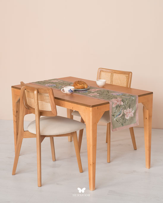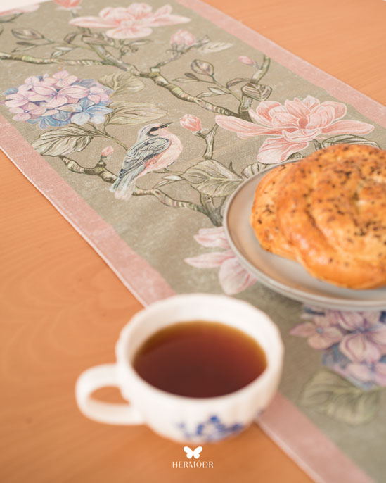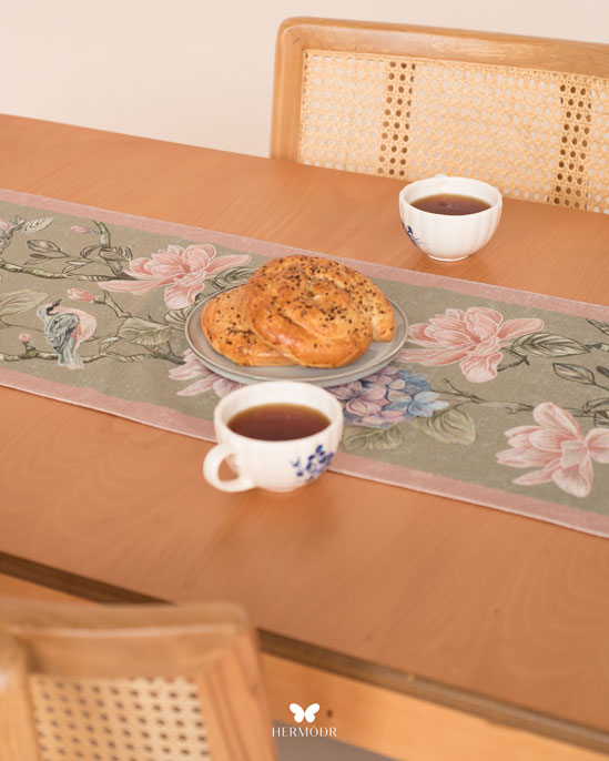 Иранская скатерть-дорожка Sobhdam Hermodr — декоративная дорожка для сервировки стола, которая добавляет интерьеру аккуратный и завершённый вид. Она подходит для ежедневного использования, праздничной сервировки и фотосъёмок.