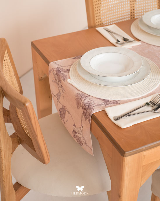 Иранская скатерть-дорожка Baharat Hermodr — декоративная дорожка для сервировки стола, которая добавляет интерьеру аккуратный и завершённый вид. Она подходит для ежедневного использования, праздничной сервировки и фотосъёмок.