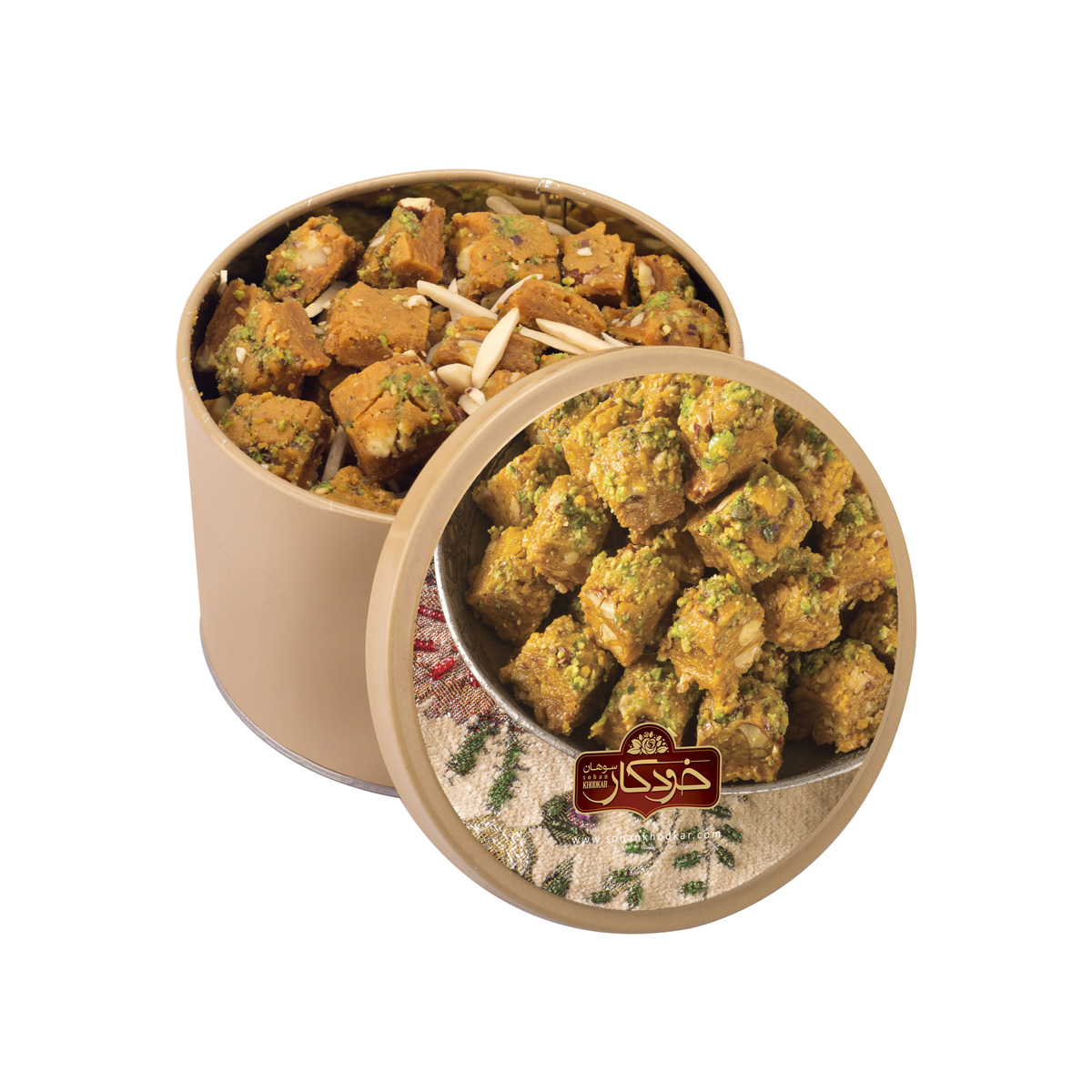 Этот иранский сохан отличается более плотной и влажной структурой. В отличие от круглых пластов, здесь используются мелко дроблёные фисташки и миндаль, равномерно распределённые внутри. По форме он напоминает восточную баклаву, что делает текстуру более насыщенной.Ореховый вкус с карамельной глубиной