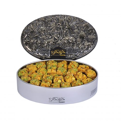 Этот иранский сохан отличается более плотной и влажной структурой. В отличие от круглых пластов, здесь используются мелко дроблёные фисташки и миндаль, равномерно распределённые внутри. По форме он напоминает восточную баклаву, что делает текстуру более насыщенной.Ореховый вкус с карамельной глубиной